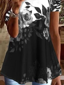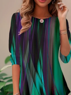 Women’s Short Sleeve Tee T-shirt Summer Gradient Pattern Crew Neck Daily Going Out Casual Top Purple